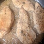 Take the pan off the heat and add the chicken broth, lemon juice, lemon zest, remaining 2 tablespoons of butter, and capers to the skillet. Scrape up any brown bits.